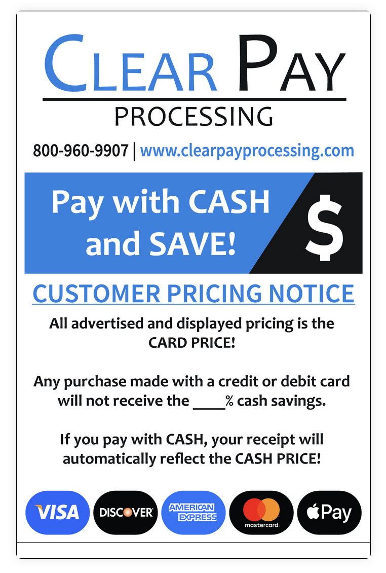 With ClearPay’s Dual Pricing program you will enjoy the same profit margins from cash payments as you do from non-cash payments.
